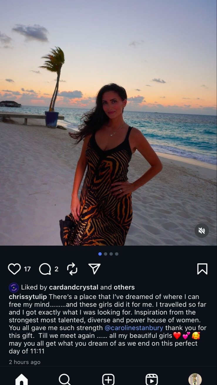 An unforgettable experience! The Maldives Retreat was pure magic—beautiful setting, nourishing activities, and incredible guidance from Caroline Stanbury, our celebrity guest mentor. Her insights, authenticity and warmth elevated the entire week. I left feeling renewed, inspired, and genuinely transformed. Thank you so much. I’d love to attend the next one if possible please.Â