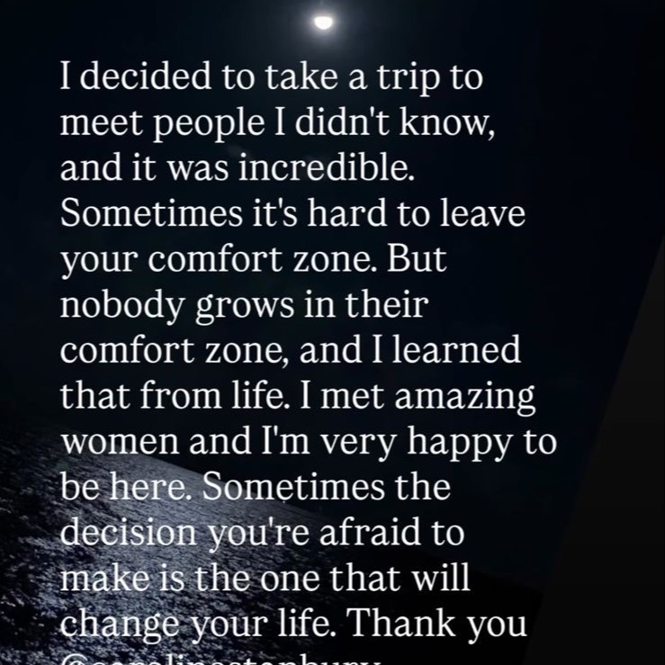 It was inspiring to be amongst highly accomplished woman and feel you were accepted by them. I feel that I have gained some lovely friendships. It was a beautiful location to escape and indulge in improving your own self esteem. It was beautiful. We all opened our hearts and it filled me up so much. New faces, stories connections and the flow and activities were perfect. Something for everyone. It changed me.